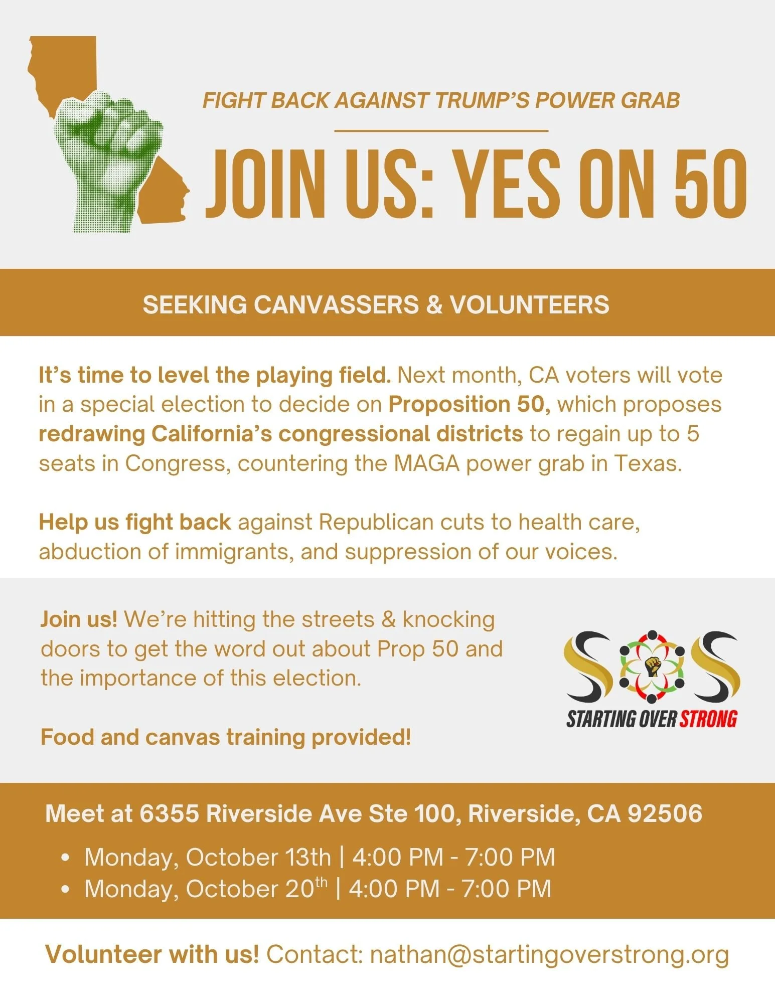 We’re hitting the streets to help folks register to vote and to learn why Prop 50 is so important.